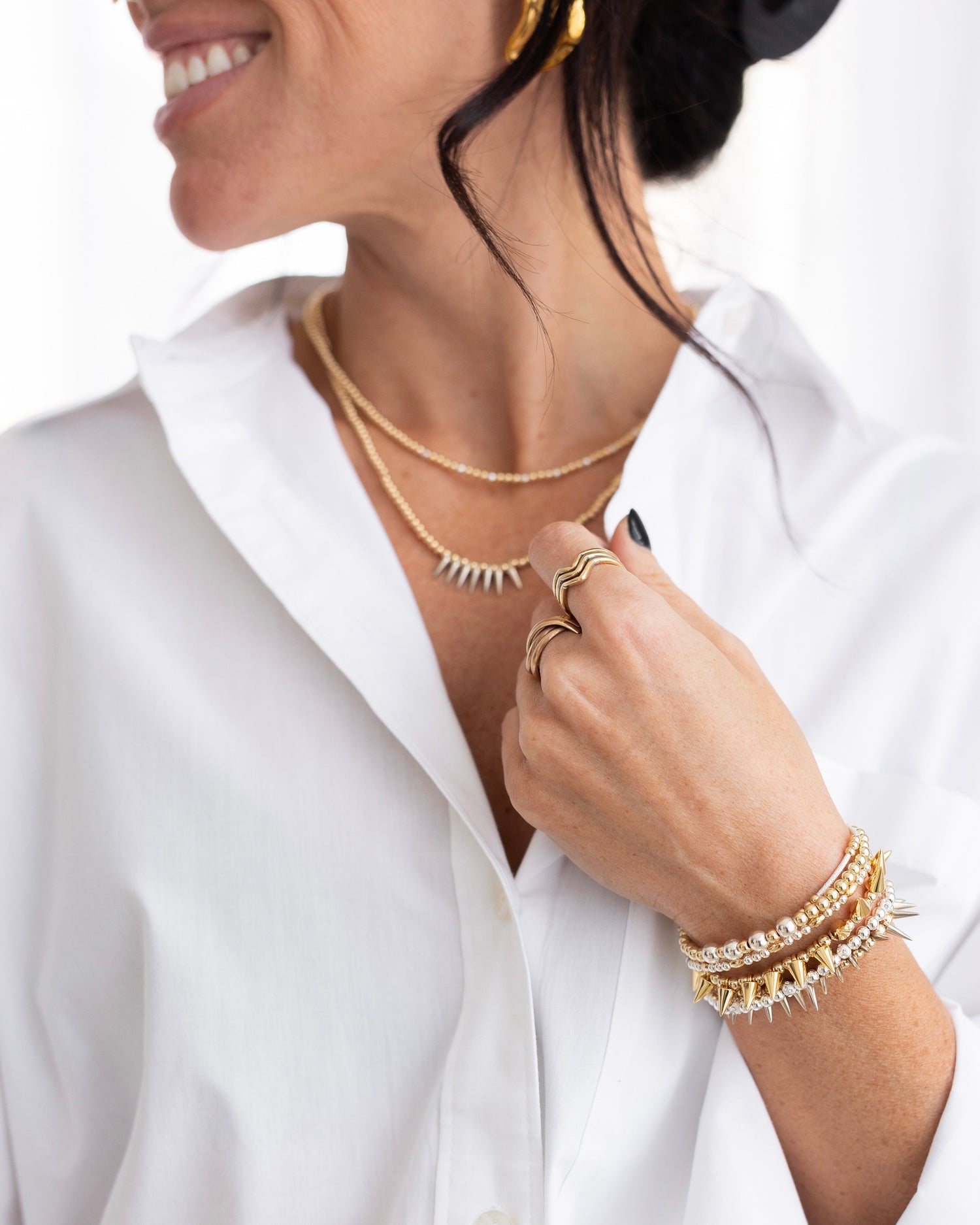 Introducing our Metal Beaded and Spike Stretch Bracelets. All made from gold filled, sterling silver, or stainless steel. Never tarnish. Meticulously crafted by hand in Ann Arbor.