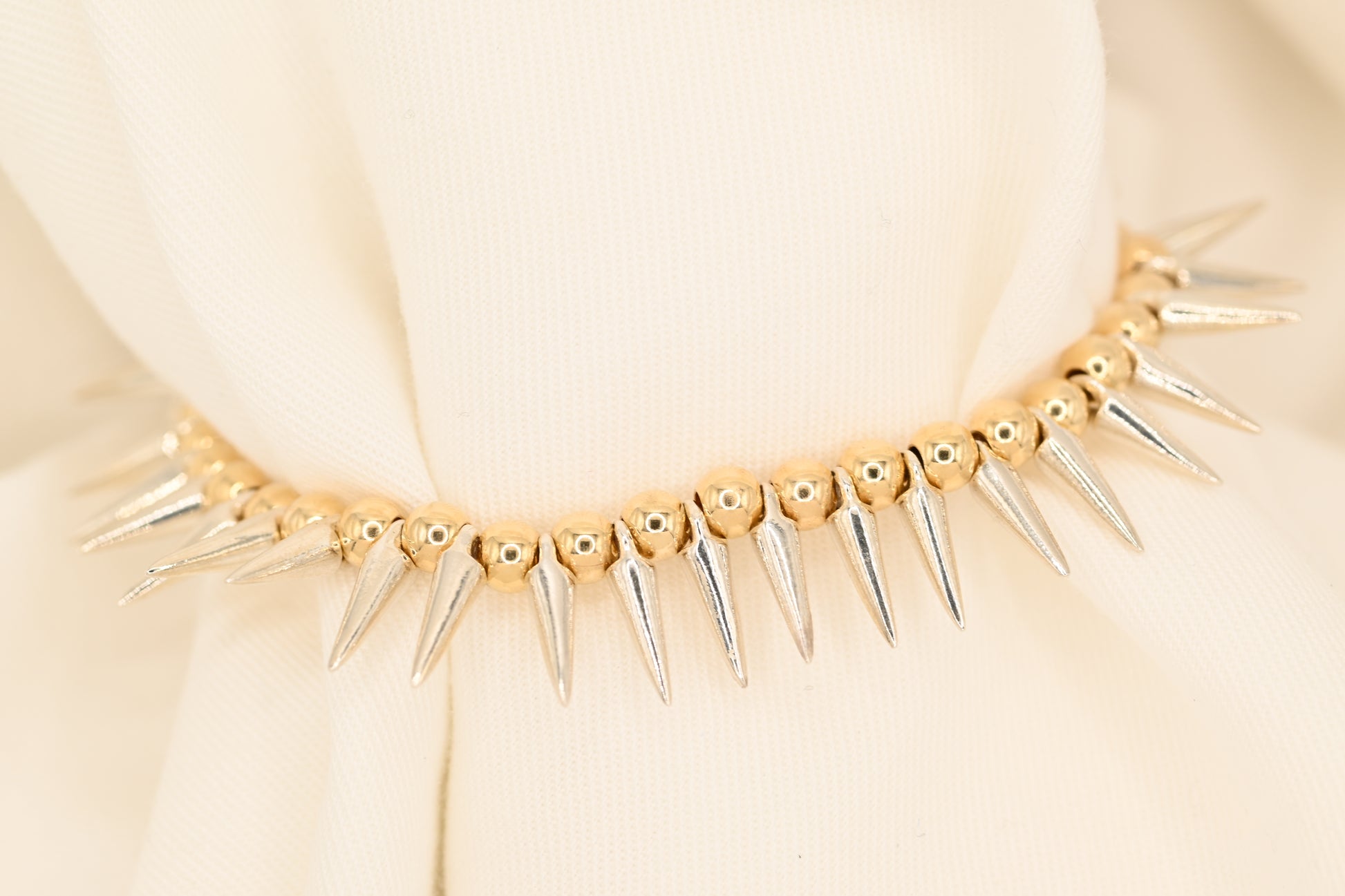 Elevate your style with the Petite Silver Spike Bracelet, a daring blend of gold-filled elegance and silver spikes. This 91 Metals signature piece balances edgy sophistication with subtle boldness, perfect for those who want to make a confident statement. Its sleek design adds an unexpected twist to any outfit, embodying fearless individuality and refined toughness.
